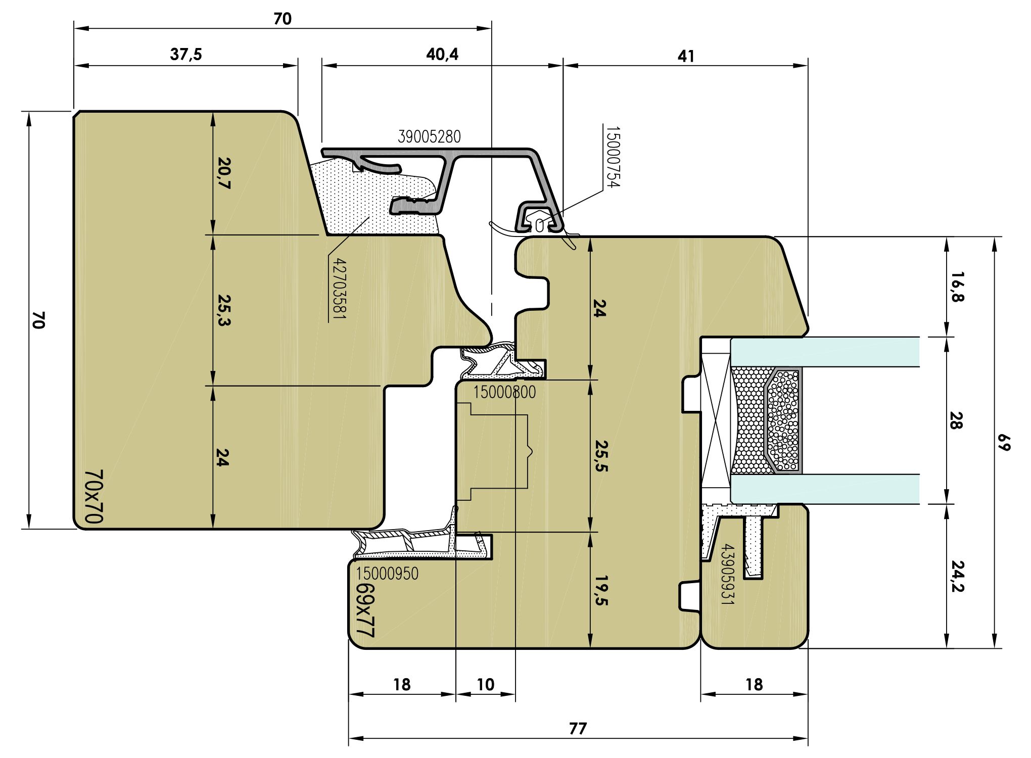 - Perfil marco de 70x69mm y 70x90mm - Perfil de hoja de 69mm de grosor - Capacidad de vidrio de 28-34mm - Triple junta de estanqueidad - Pino laminado Finger, Pino Flandes, macizo, Iroko laminado finger, Iroko macizo, Roble, Niangon, etc. - Sistema de herraje GU, de alta calidad para cualquier tipo de apertura y seguridad - Protección hidrófugo en cualquiera de nuestros acabados - Opcional: sirio de aluminio, sirio de madera o vierteaguas agujereado - Posibilidad de añadir: - Contraventano interior o exterior - Mallorquinas - Saetino o embarretado - Persiana con monobloc motorizado o manual - Mosquitera - Aireadores