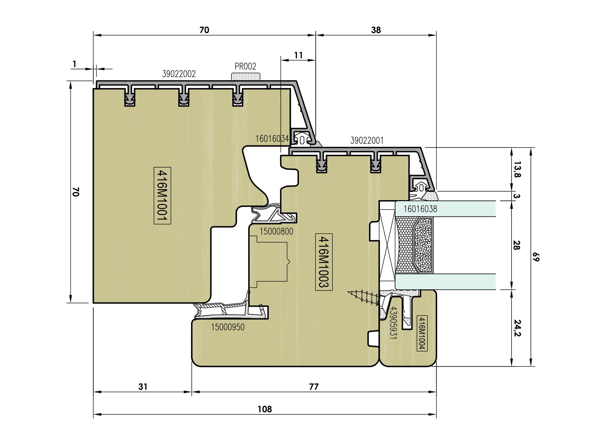 - Perfil marco 70x70 mm - Perfil de hoja de 69 mm de grosor - Capacidad de vidrio de 28-34 mm - Triple junta de estanqueidad - PinoLaminado Finger, CastañoLaminado Finger - Sistema de herraje GU de alta calidad y para cualquier tipo de apertura y seguridad - Protección interior hidrófugo en cualquiera de nuestros acabados - Aluminio exterior en varios acabados - Posibilidad de añadir: - Contraventano interior - Persiana con monobloc motorizado o manual - Mosquitera - Aireadores