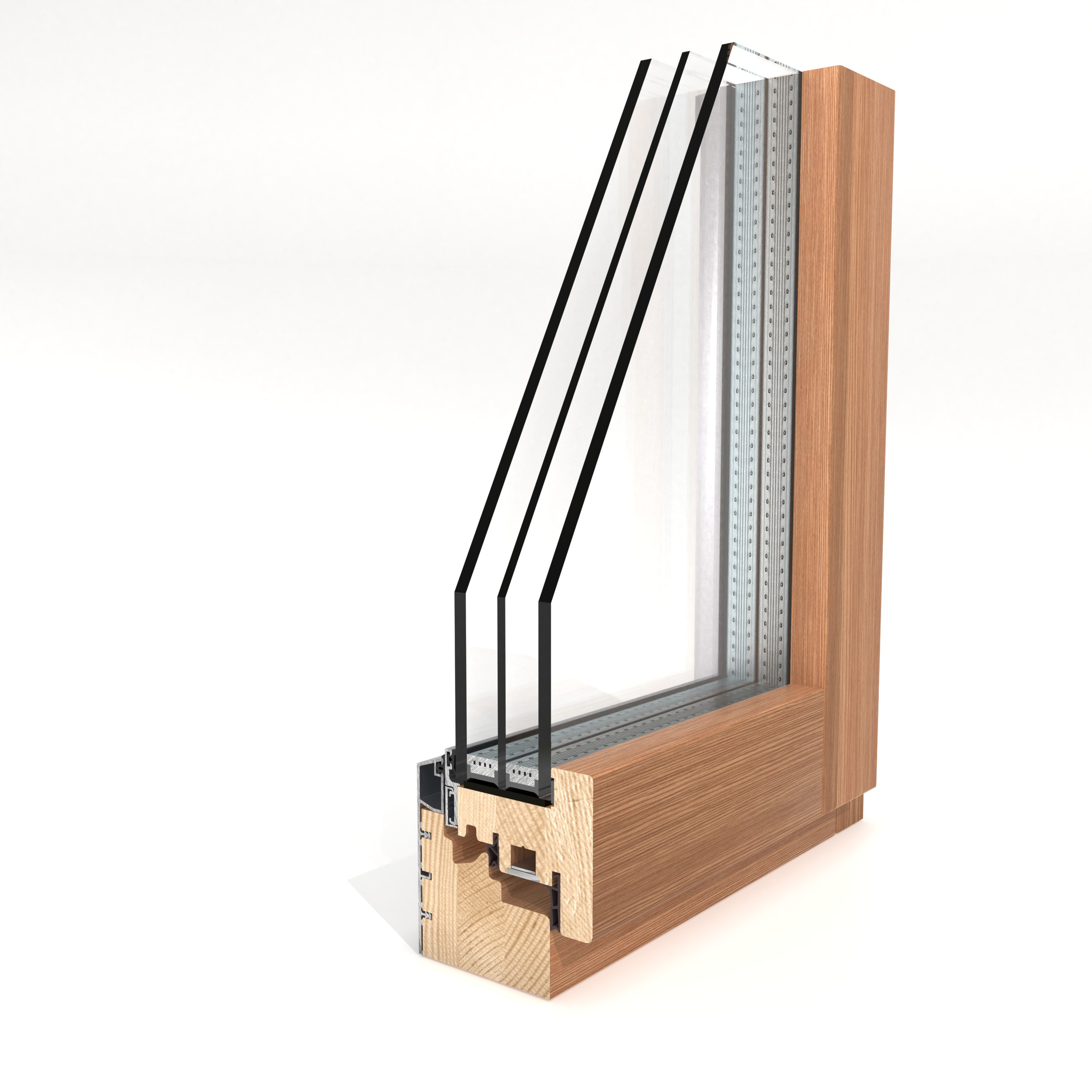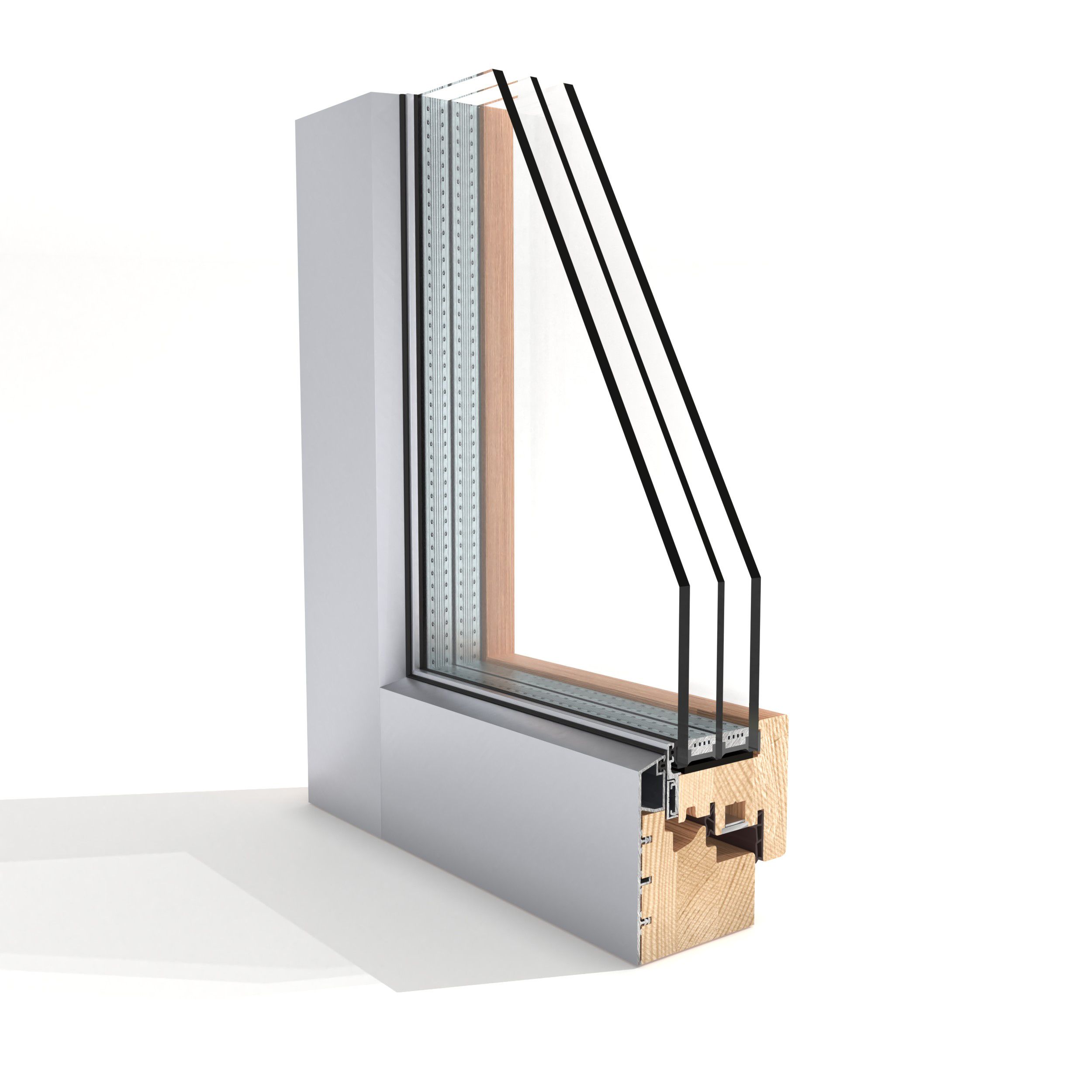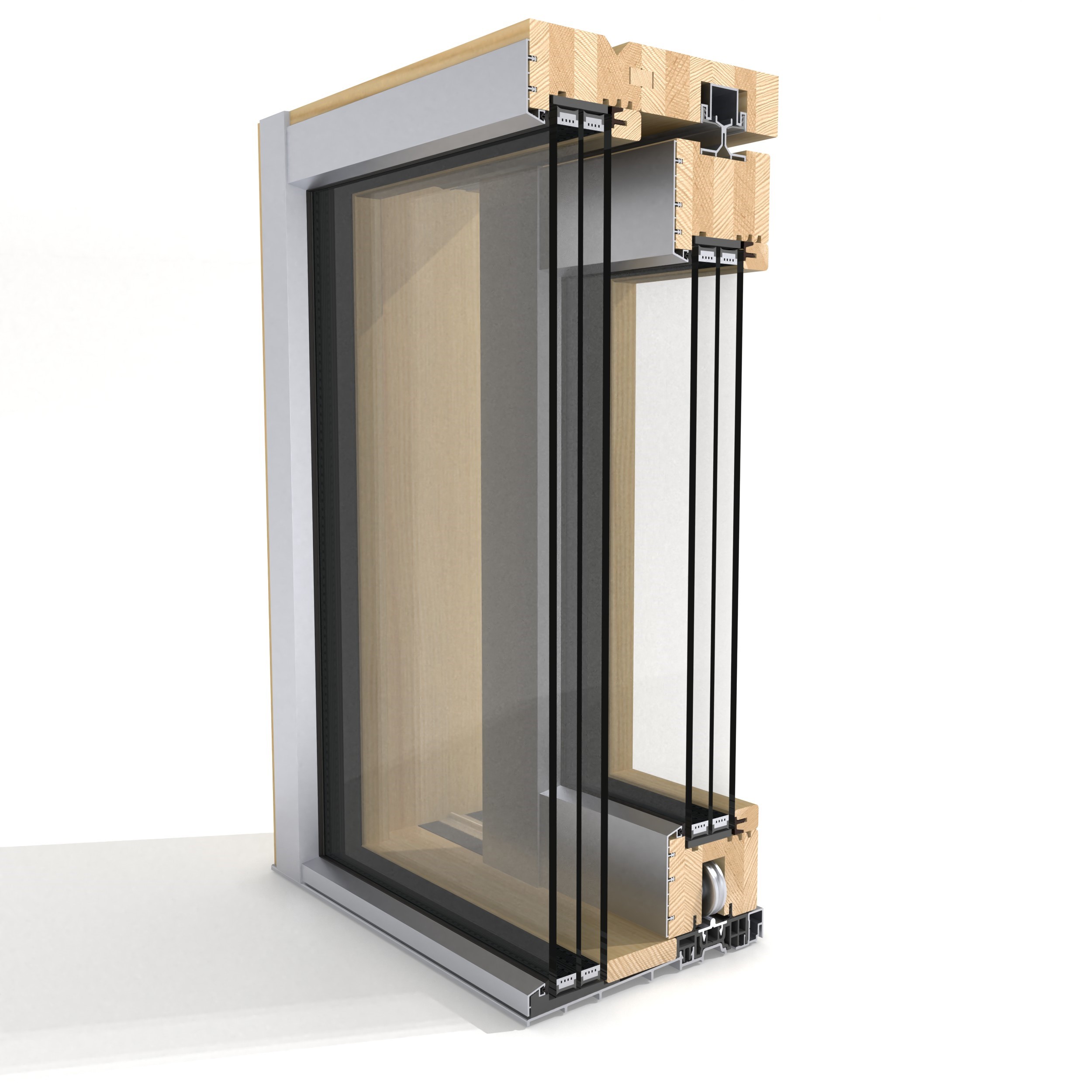 El modelo de ventana Panoramika Plus es un tipo de cerramiento formada por madera laminada y aluminio de extrusión.